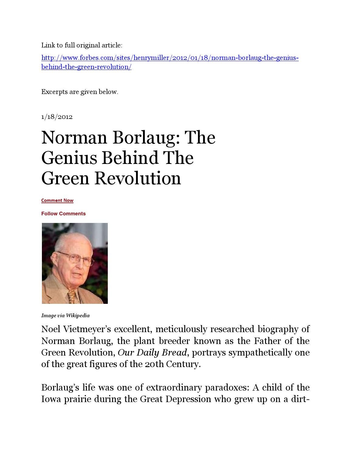 Who Was The Father Of Green Revolution / Asked aug 8 in plant breeding by karan01 (51.1k points).